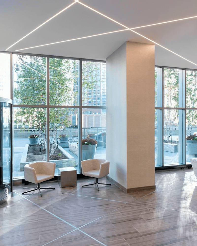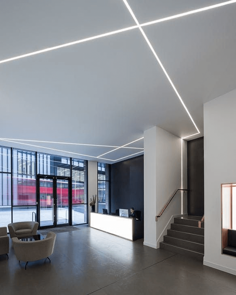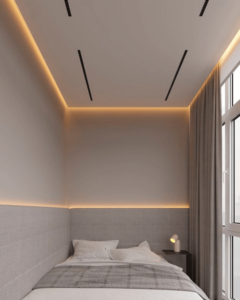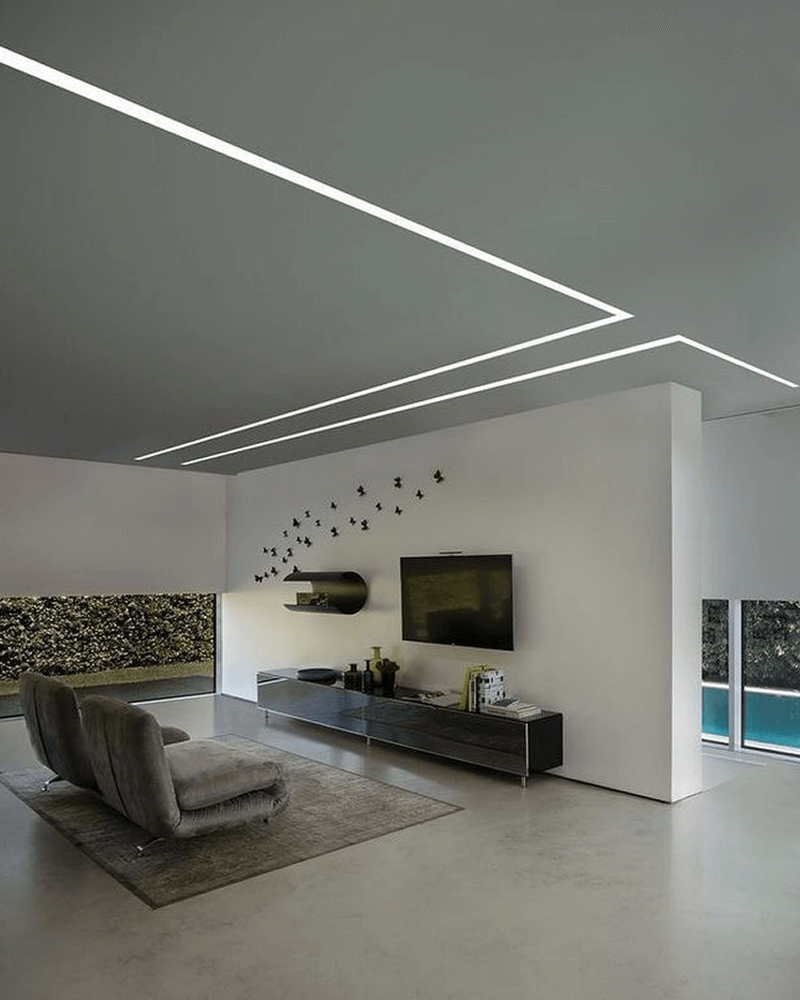 אפקט תקרה מרחפת עם גיאומטריה מושלמת. מינימליסטי, אלגנטי