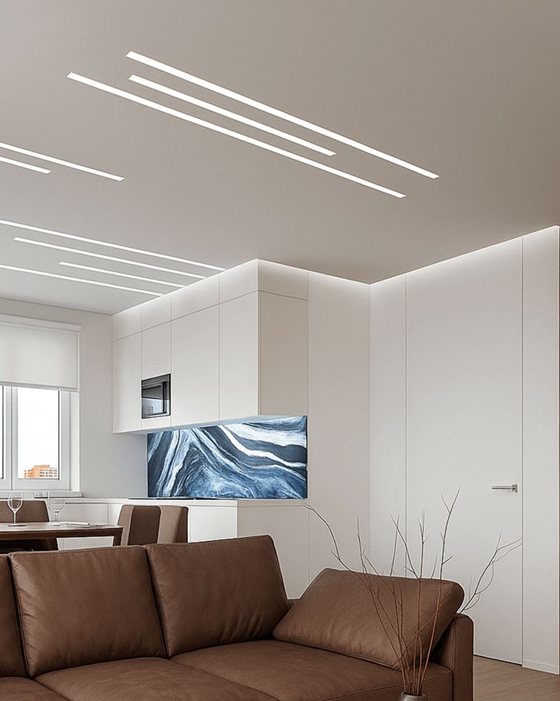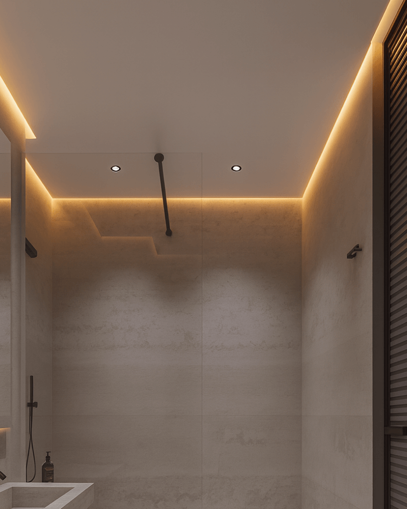 תאורה מובנית לאזורים מודגשים. מודרני, נקי, פונקציונלי